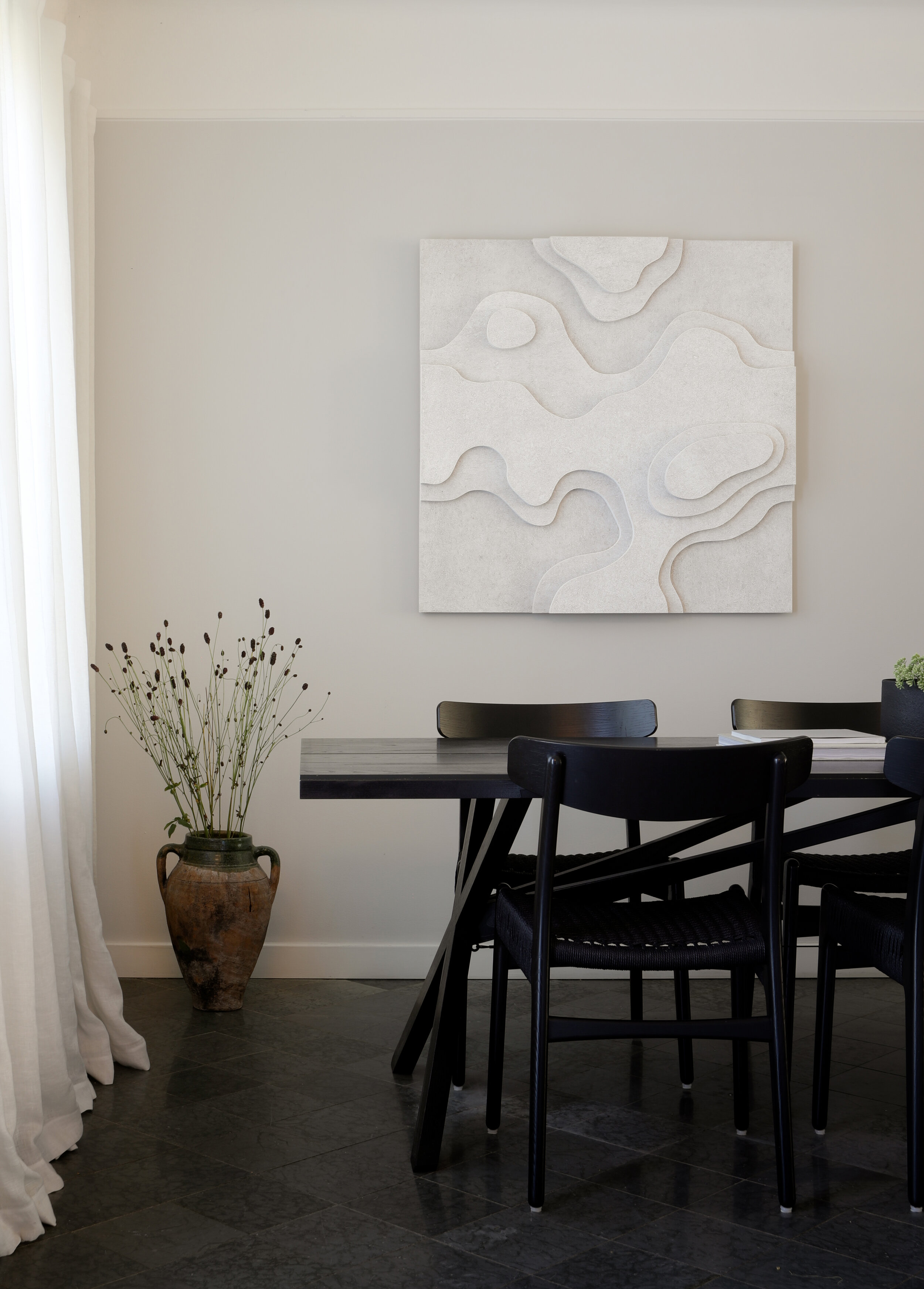 För den svenska designern är naturen en oändlig inspirationskälla, då hon finner inspiration i olika taktila ytor, organiska strukturer av naturmaterial och i den mångfald av färger som finns i naturen. Designprocessen handlar om att hitta rätt balans mellan det unika uttrycket och den uppenbara enkelheten och kvaliteten i bra design som gör att ett föremål håller.